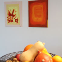 Das Thema war "Kleinformate", aus dem Grund brachte ich vier geometrische Werke mit den Abmessungen 30 x 30 cm mit.